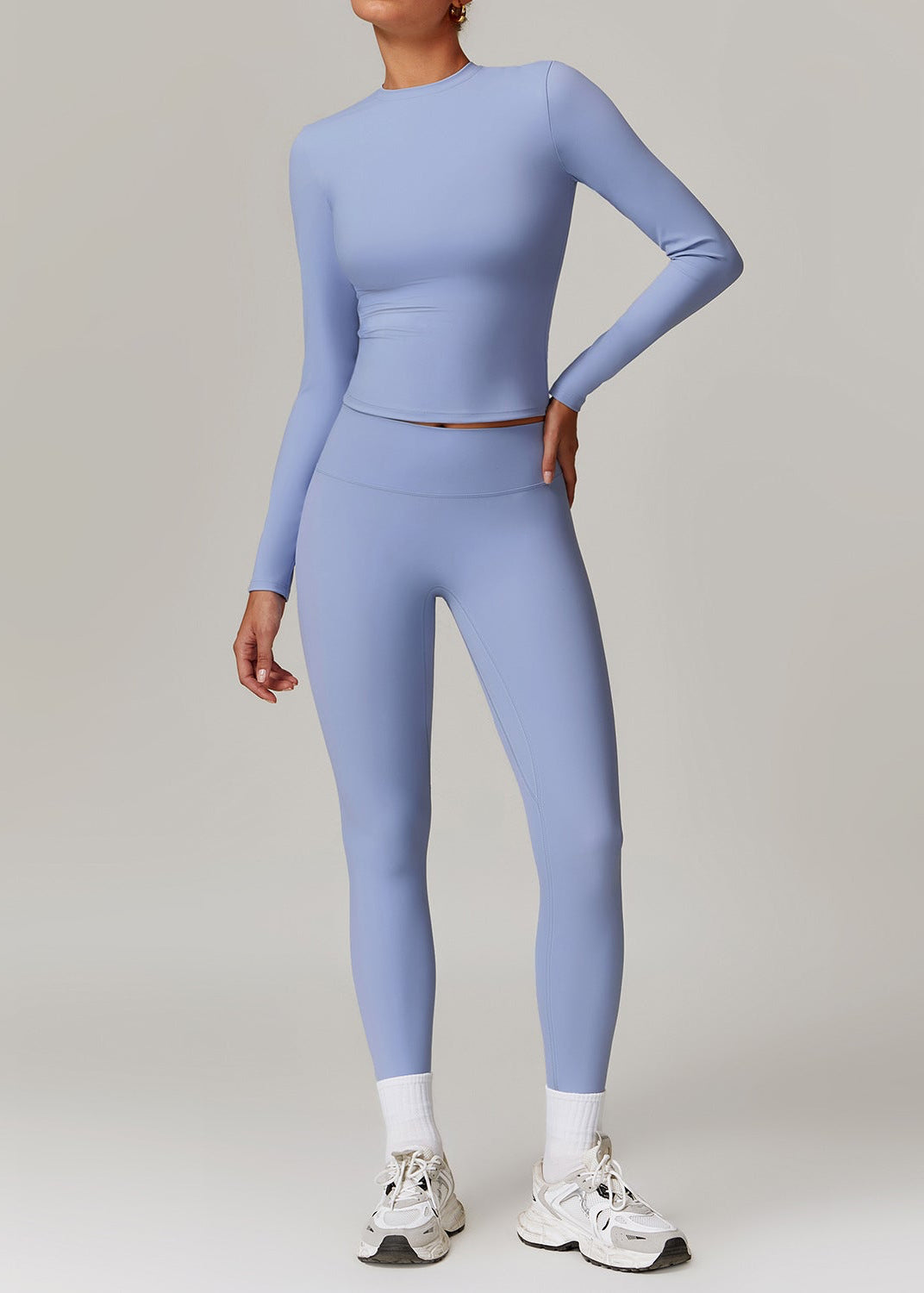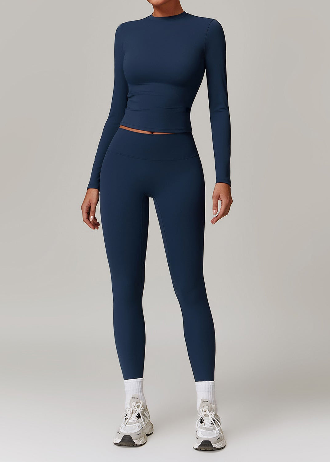 Adoptez une élégance sans effort avec l'ensemble Harmony, une association élégante d'un haut à manches longues ajustée et d'un legging taille haute conçu à la fois pour la performance et le confort au quotidien.