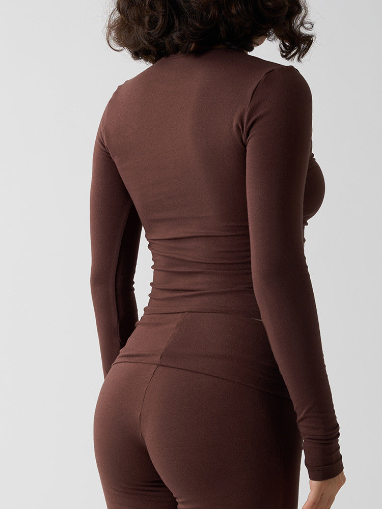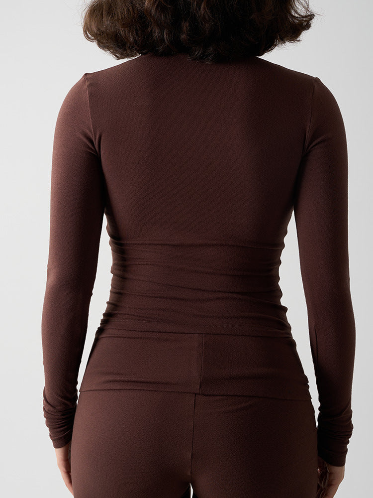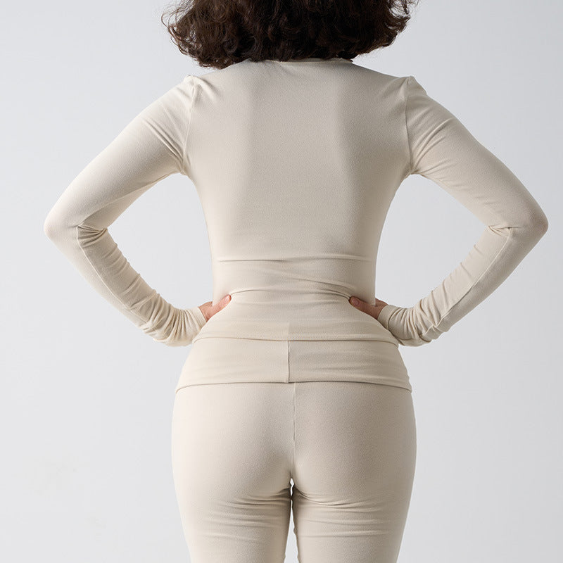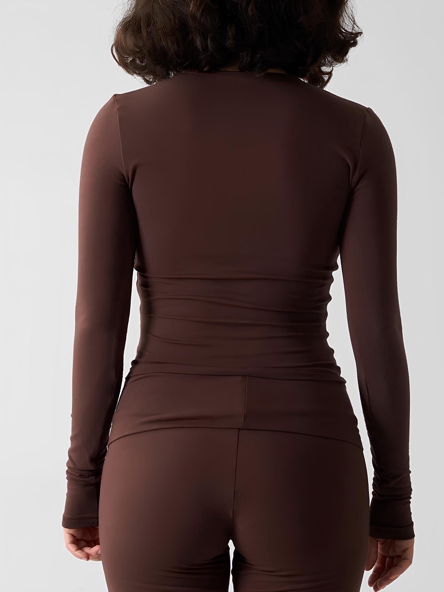 The seamless construction ensures a second-skin feel with no irritation, while the slim fit and flexible stretch move effortlessly with your body. Whether paired with leggings or worn on its own, this long sleeve top delivers comfort with a sleek, minimal look.