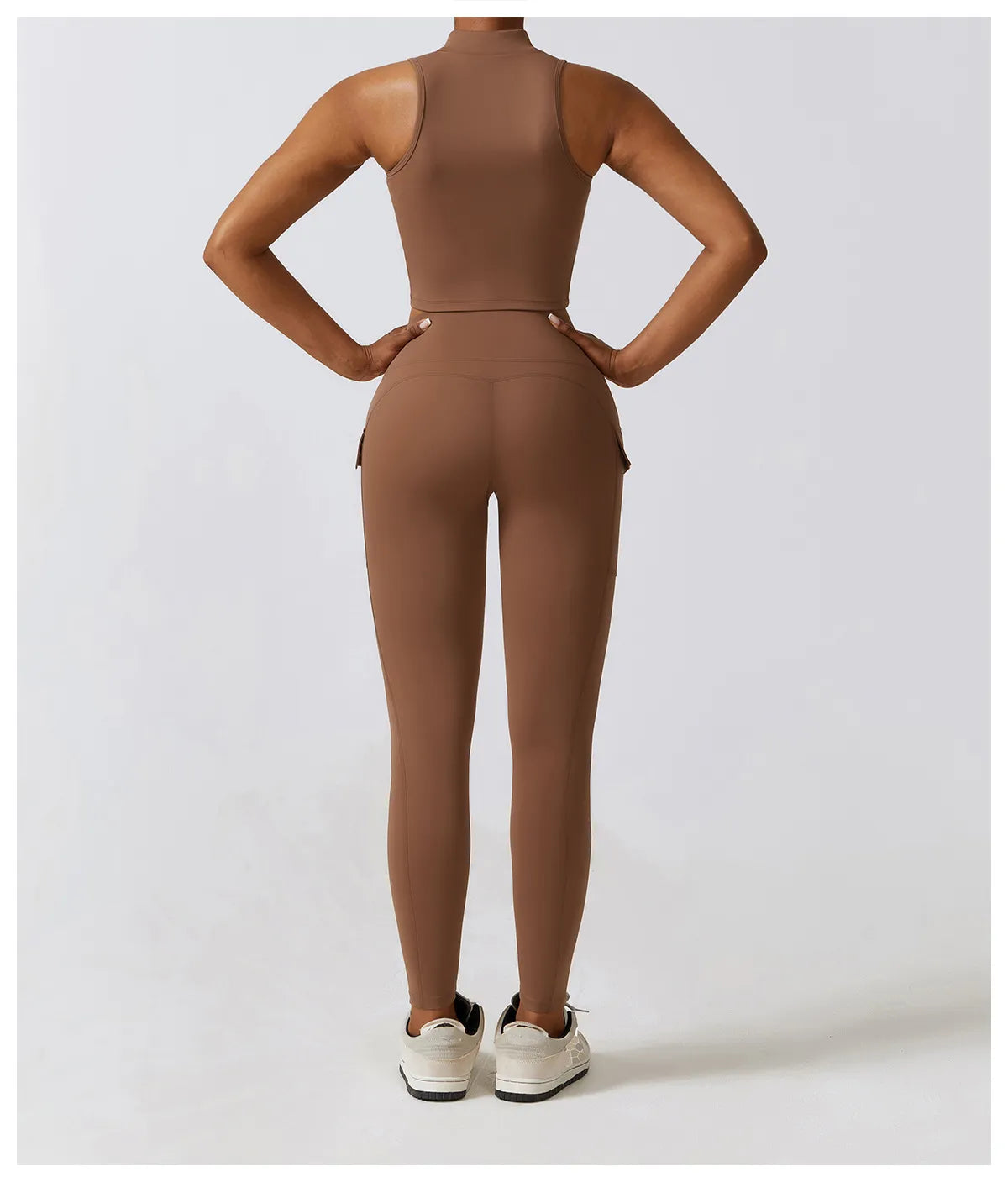 Step into modern elegance with the Evolve Set, a sleek combination of a turtleneck zip-up top and high-waist sculpting leggings designed for women who seek both style and performance.