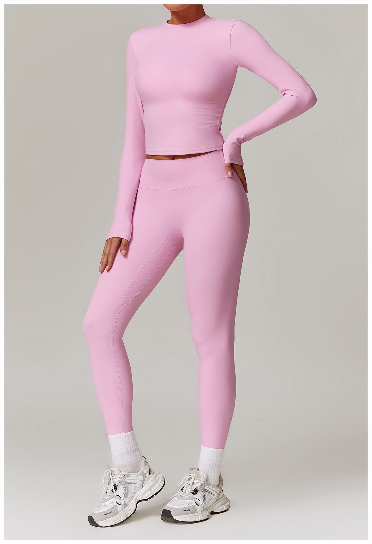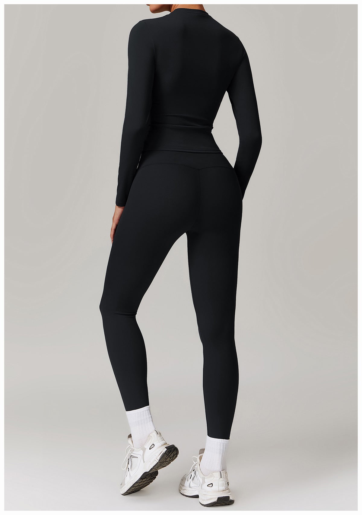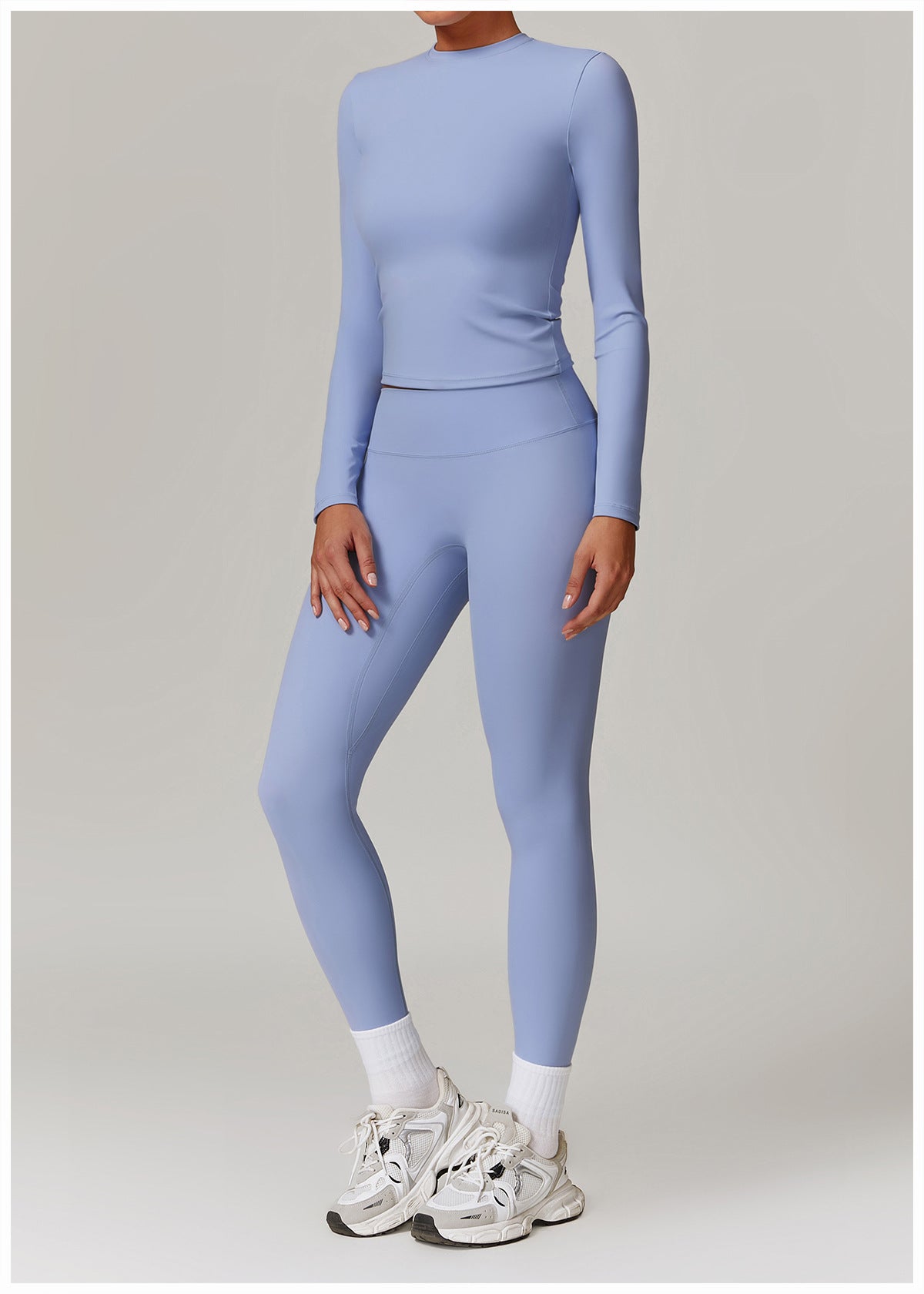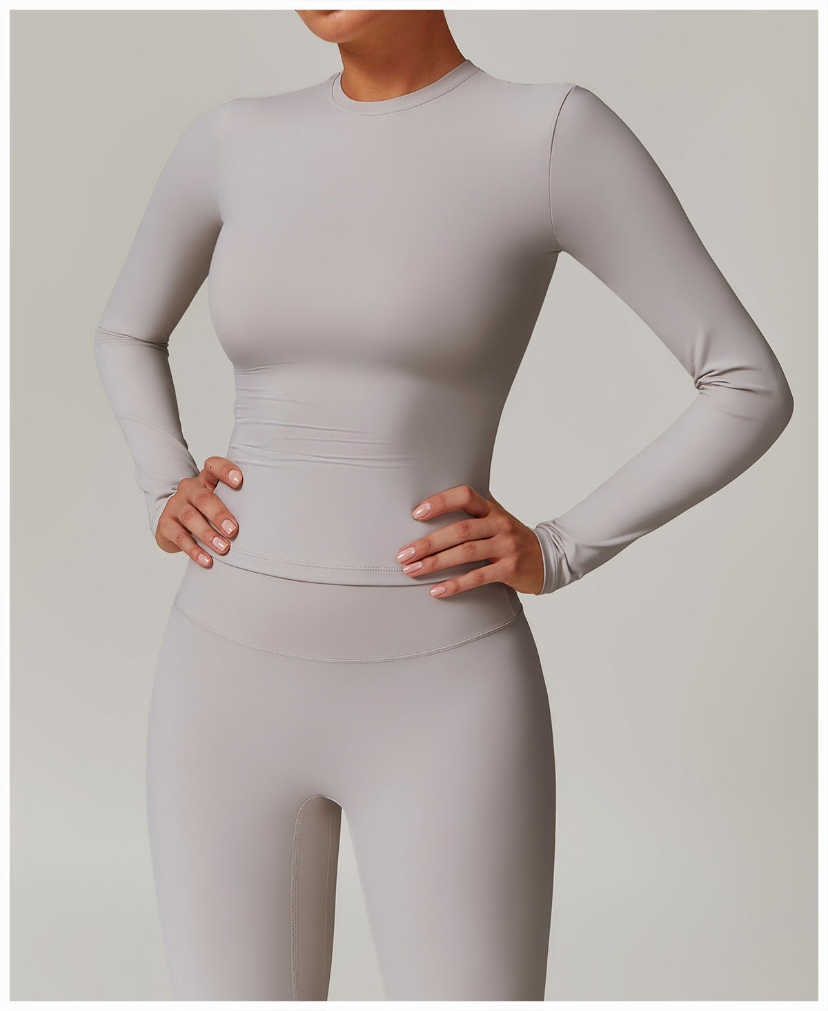 The long-sleeve shirt delivers lightweight coverage with a tight, flexible fit that moves with you—perfect for layering or wearing on its own. Together, the set blends style, functionality, and comfort, making it ideal for yoga, gym training, running, or athleisure wear.