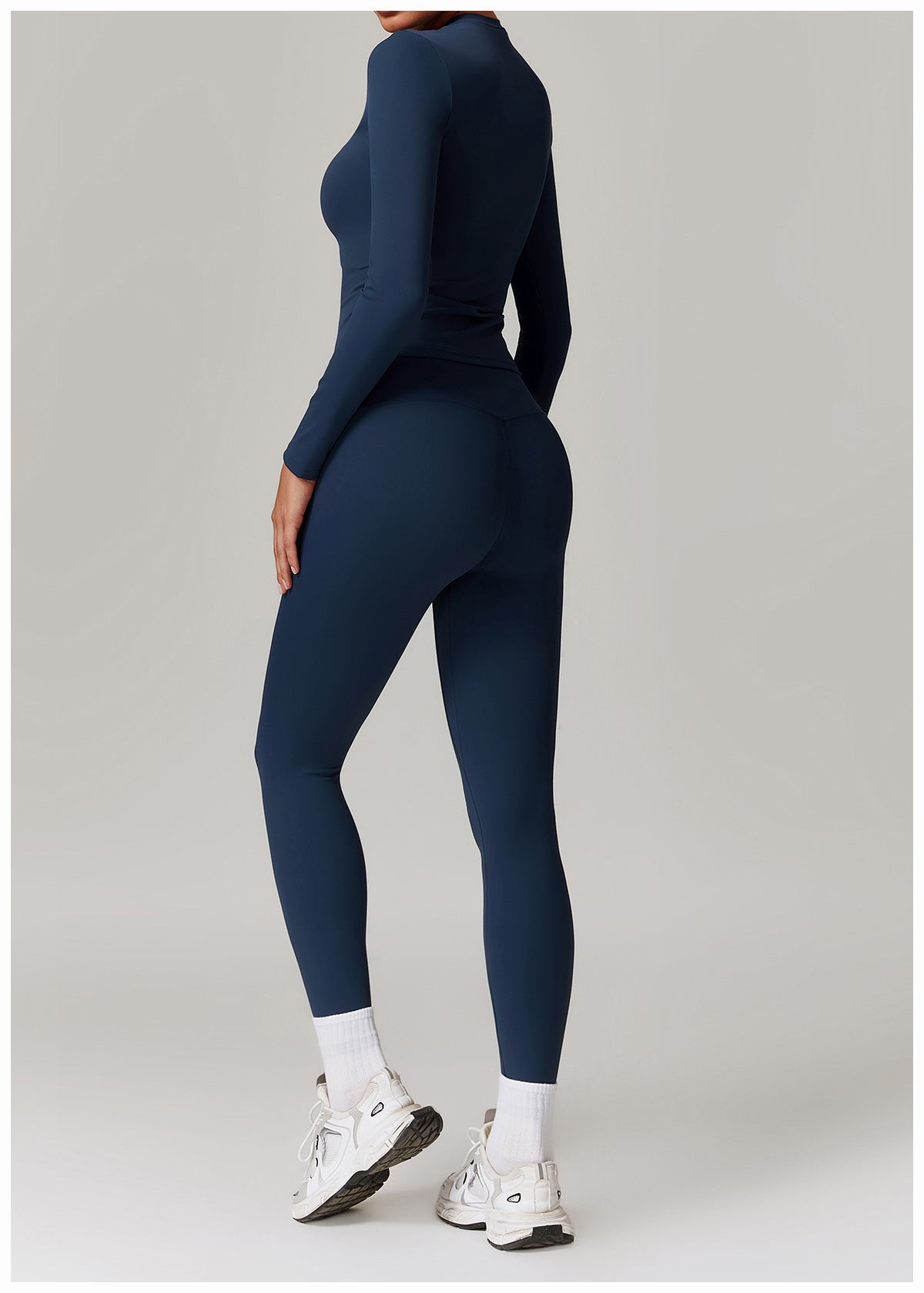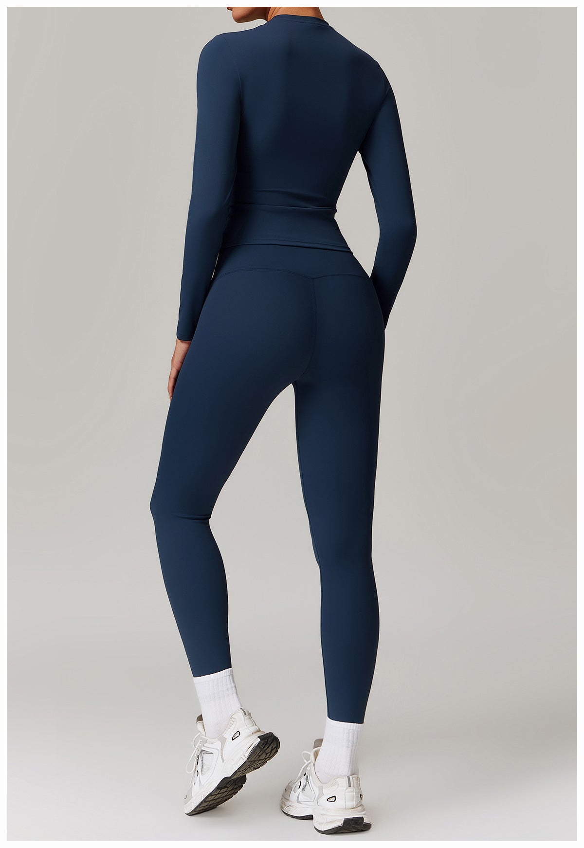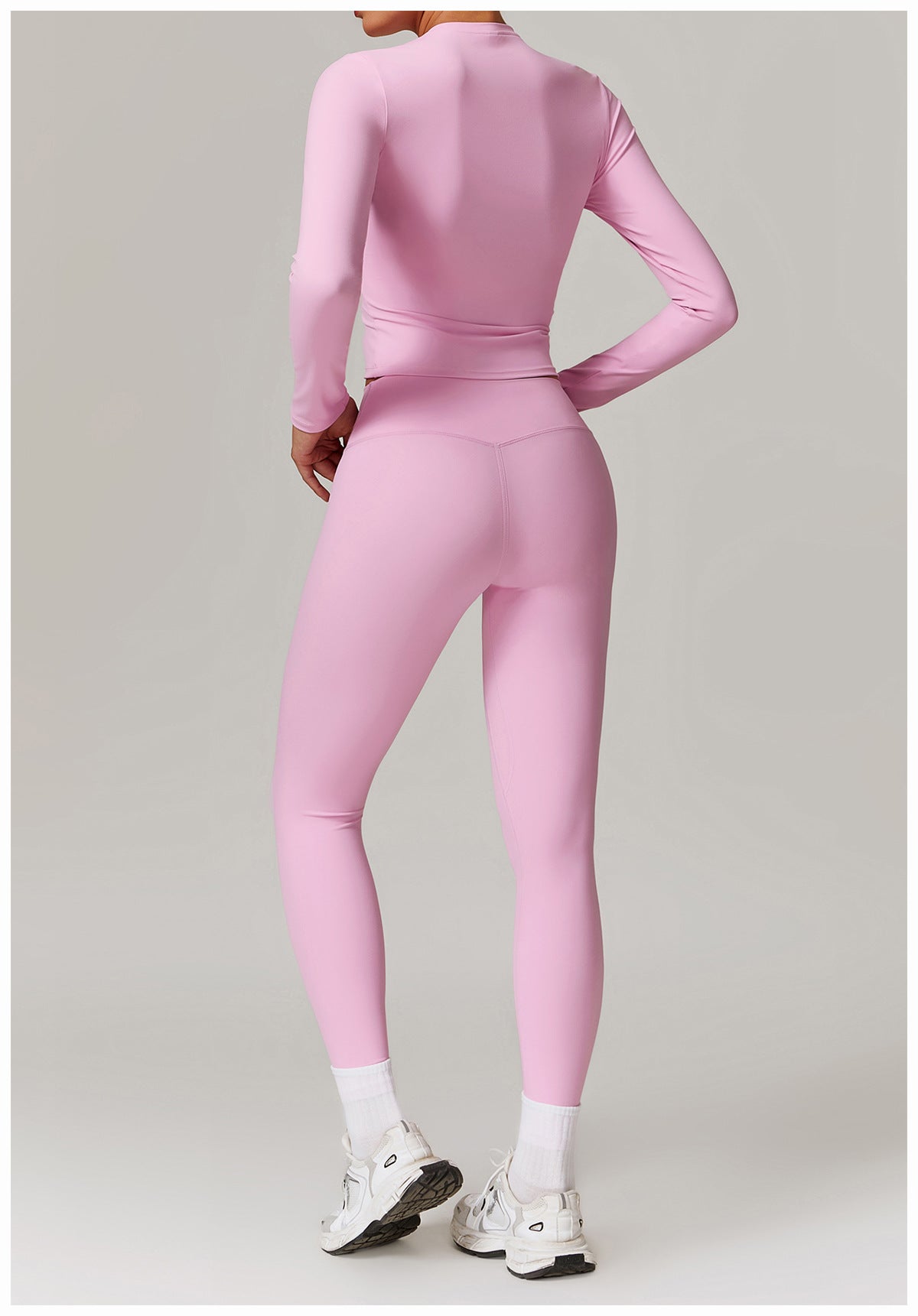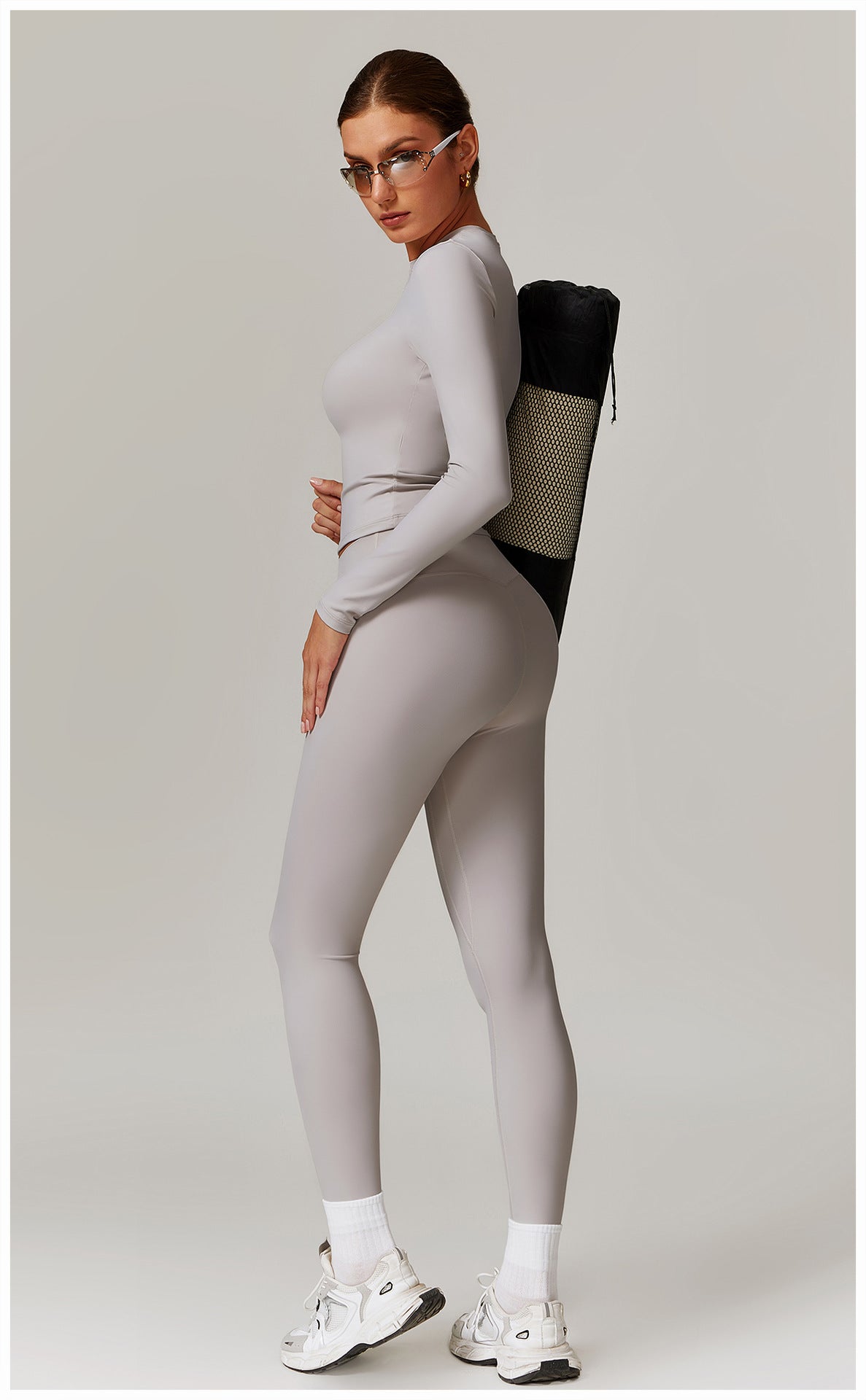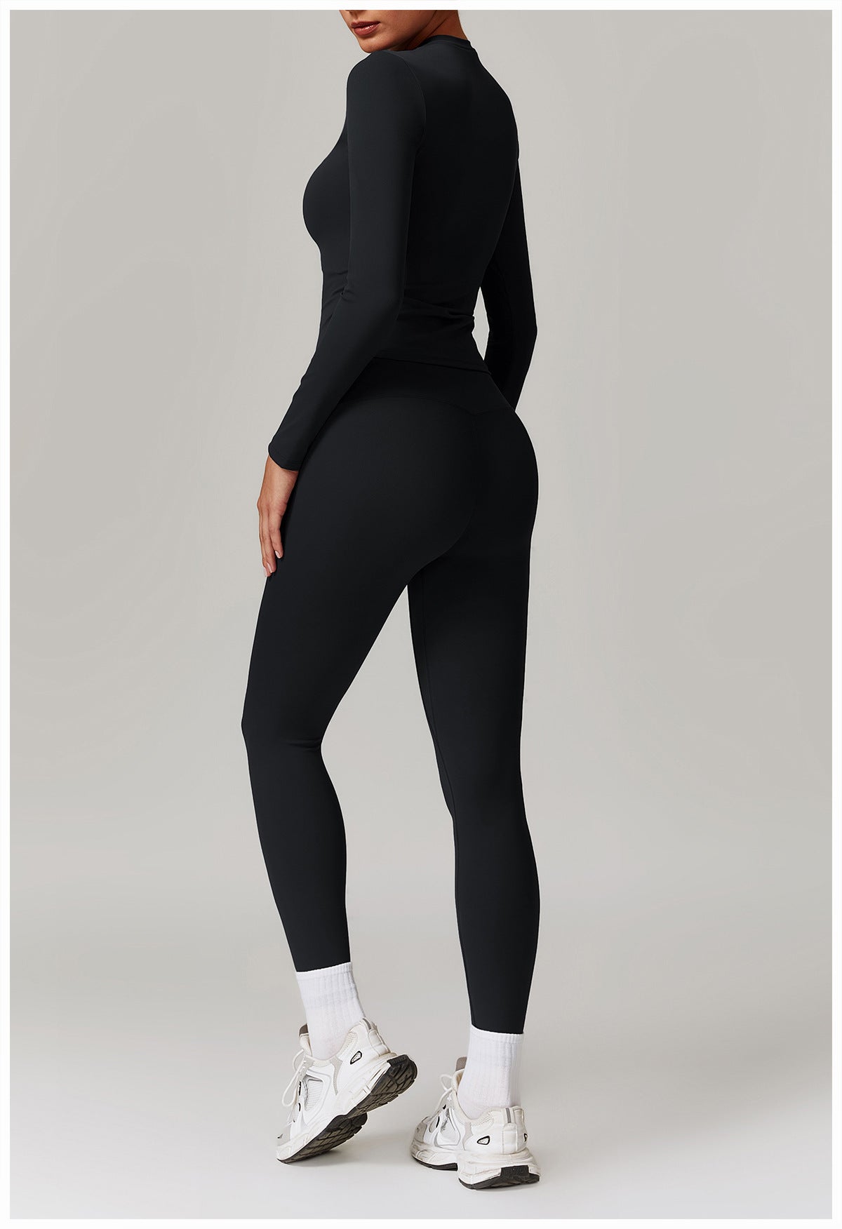 The long-sleeve shirt delivers lightweight coverage with a tight, flexible fit that moves with you—perfect for layering or wearing on its own. Together, the set blends style, functionality, and comfort, making it ideal for yoga, gym training, running, or athleisure wear.